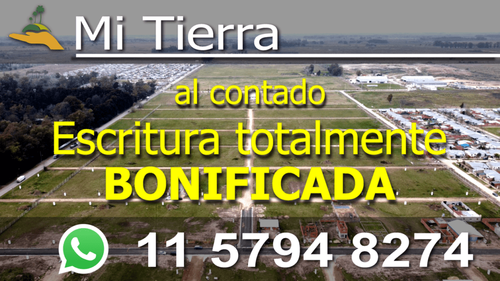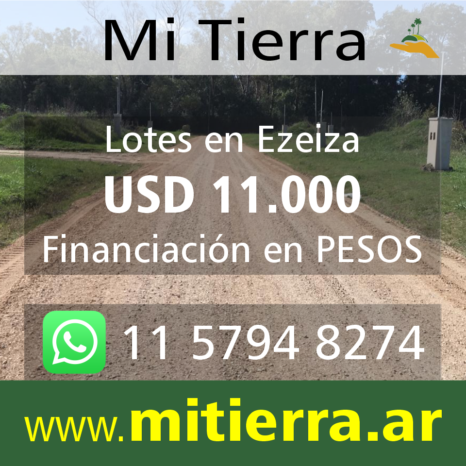 Financiá tu lote en Ezeiza – Mi Tierra – hasta 60 CUOTAS en PESOS.Esta oportunidad es para vos!!! Programa tu visita al loteo y a las oficinas, por WhatsApp al: 11 5794 8274